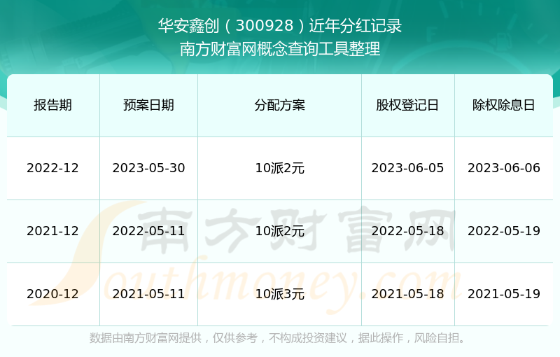 近年華安鑫創(chuàng)分紅情況如下表所示:
