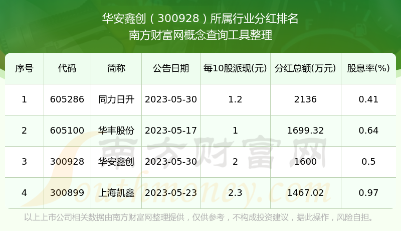 二、華安鑫創(chuàng)300928行業(yè)分紅排名