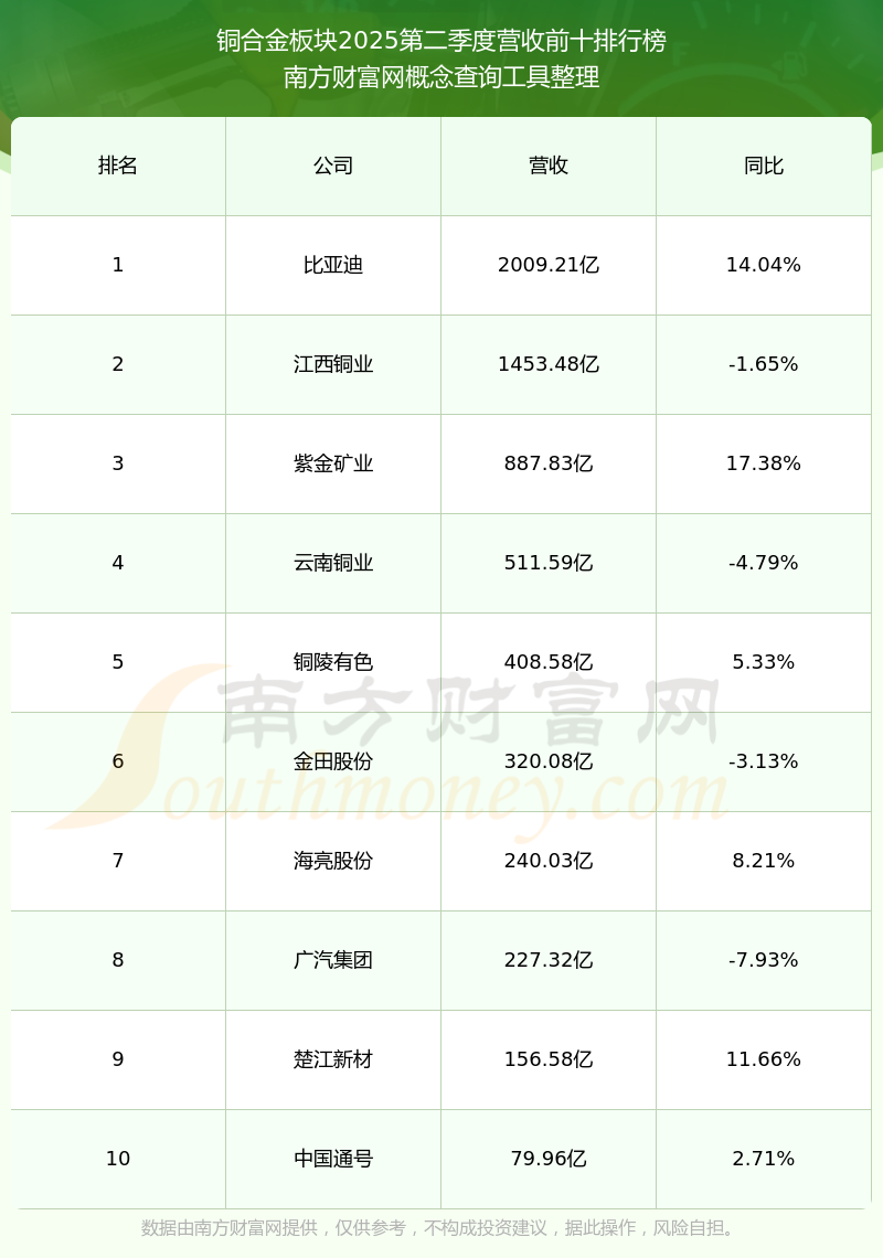 按照南方財(cái)富網(wǎng)概念查詢工具統(tǒng)計(jì),該股所屬板塊為銅合金板塊,該板塊共有19只股票,斯瑞新材2025第二季度營(yíng)收在該板塊中排名為第19名,該板塊2025第二季度營(yíng)收排名前十的股票如下表: