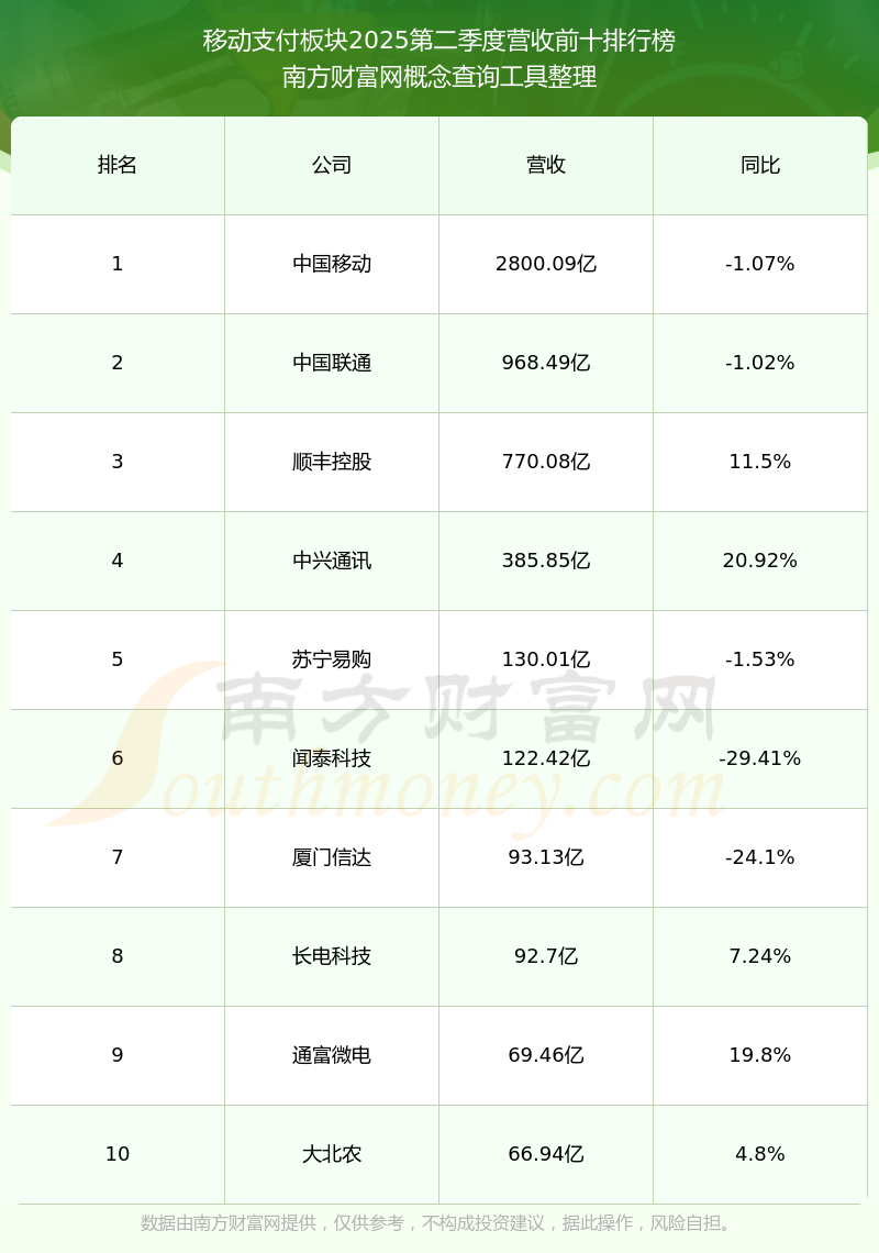 按照南方財(cái)富網(wǎng)概念查詢工具統(tǒng)計(jì),該股所屬板塊為移動(dòng)支付板塊,該板塊共有111只股票,信雅達(dá)2025第二季度營(yíng)收在該板塊中排名為第56名,該板塊2025第二季度營(yíng)收排名前十的股票如下表: