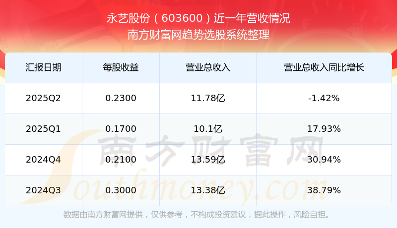 2025年第二季度,永藝股份營收同比-1.42%,凈利潤同比-10.34%。