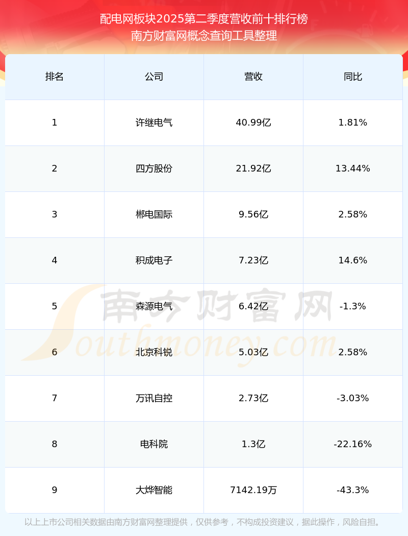 按照南方財富網(wǎng)概念查詢工具統(tǒng)計,該股所屬板塊為配電網(wǎng)板塊,該板塊共有9只股票,宏力達2025第二季度營收在該板塊中排名為第9名,該板塊2025第二季度營收排名前十的股票如下表: