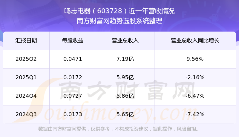 鳴志電器發(fā)布2025年第二季度財(cái)報(bào)。實(shí)現(xiàn)總營收7.19億元,同比增長9.56%;扣非凈利潤同比增長-46.64%至1780.25萬元。