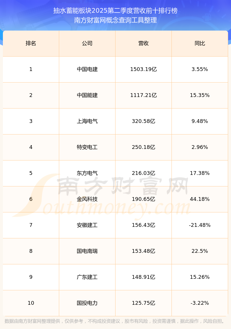 按照南方財(cái)富網(wǎng)概念查詢工具統(tǒng)計(jì),該股所屬板塊為抽水蓄能板塊,該板塊共有63只股票,南網(wǎng)儲(chǔ)能2025第二季度營(yíng)收在該板塊中排名為第33名,該板塊2025第二季度營(yíng)收排名前十的股票如下表: