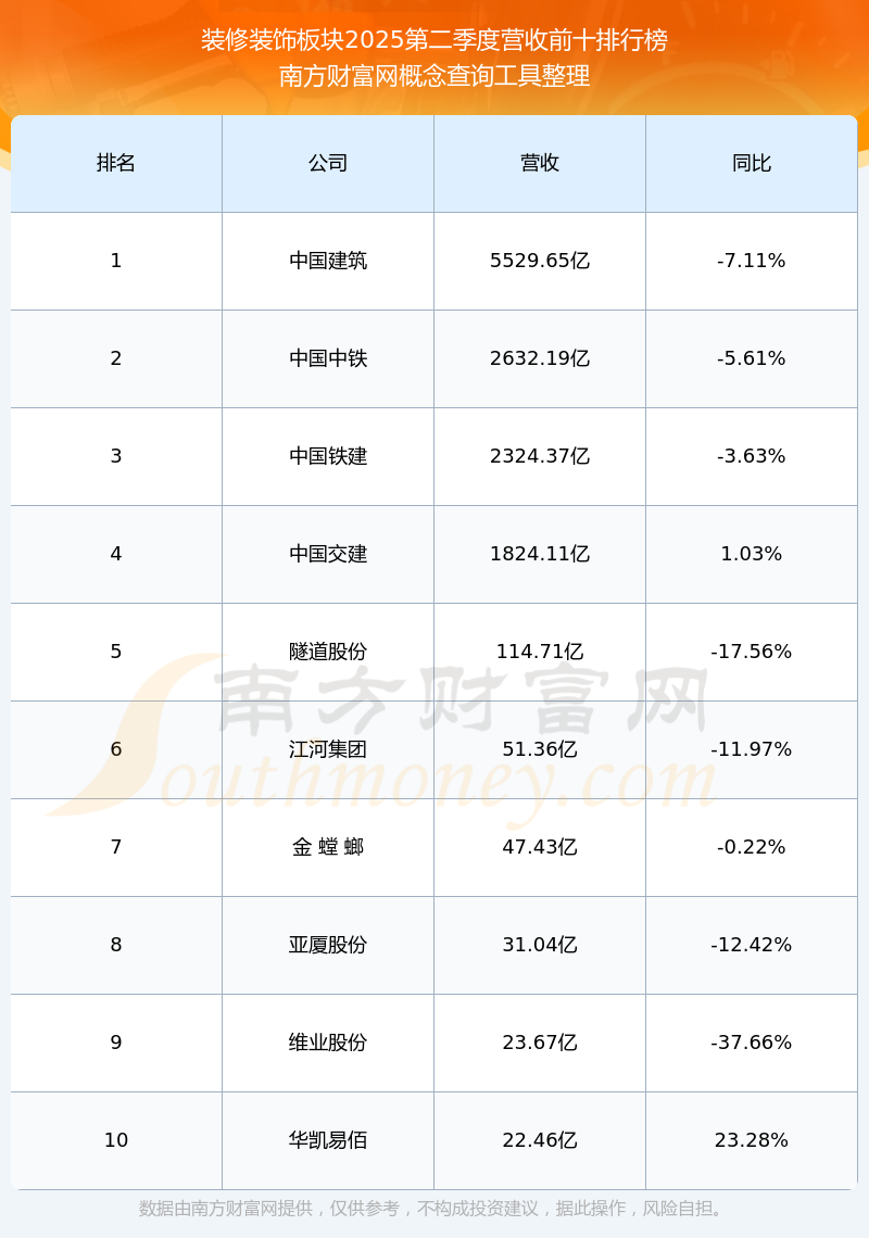 按照南方財富網(wǎng)概念查詢工具統(tǒng)計,該股所屬板塊為裝修裝飾板塊,該板塊共有57只股票,柯利達(dá)2025第二季度營收在該板塊中排名為第29名,該板塊2025第二季度營收排名前十的股票如下表: