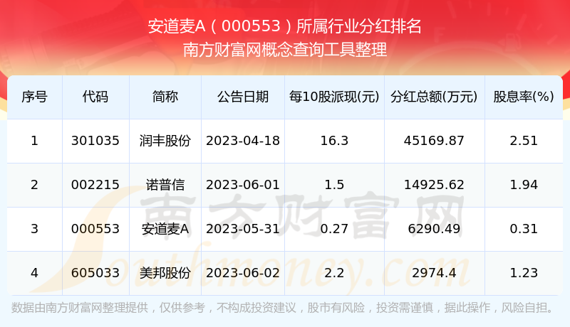 按照南方財富網(wǎng)趨勢選股系統(tǒng)統(tǒng)計,安道麥A所屬行業(yè)為除草劑行業(yè),除草劑行業(yè)分紅排名情況如下表: