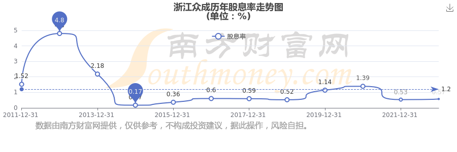 近年浙江眾成年度股息率走勢(shì)如下圖:
