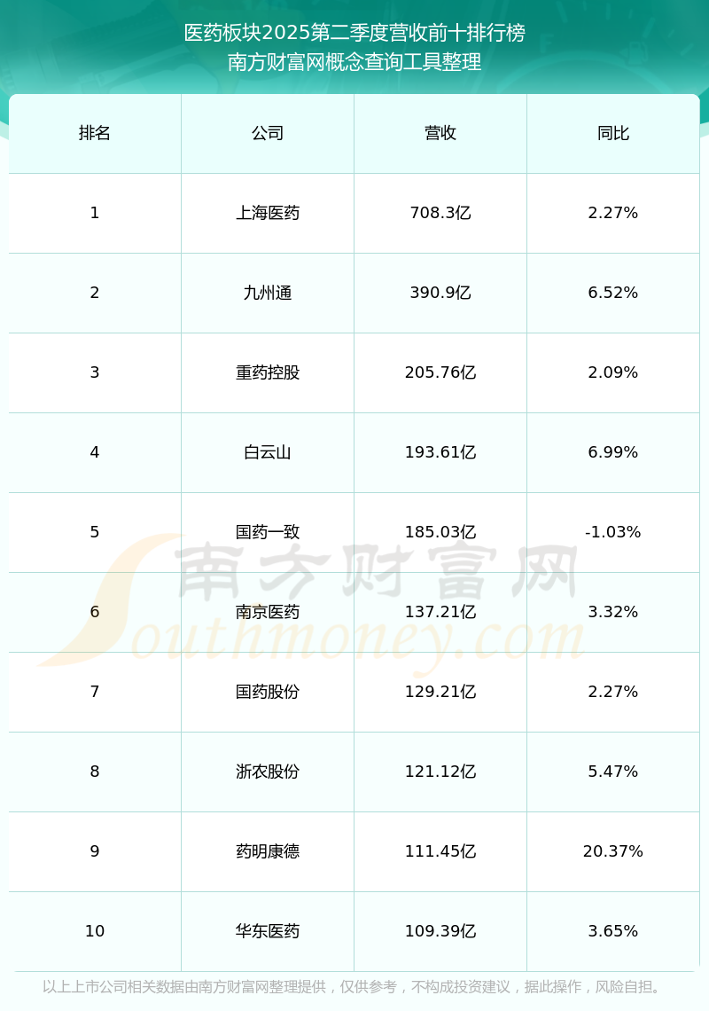 按照南方財(cái)富網(wǎng)概念查詢工具統(tǒng)計(jì),該股所屬板塊為醫(yī)藥板塊,該板塊共有498只股票,復(fù)旦張江2025第二季度營(yíng)收在該板塊中排名為第326名,該板塊2025第二季度營(yíng)收排名前十的股票如下表:
