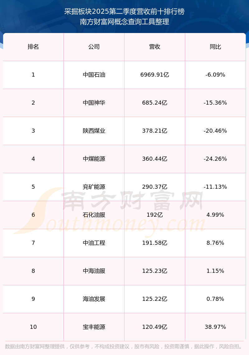 按照南方財(cái)富網(wǎng)概念查詢(xún)工具統(tǒng)計(jì),該股所屬板塊為采掘板塊,該板塊共有77只股票,龍高股份2025第二季度營(yíng)收在該板塊中排名為第77名,該板塊2025第二季度營(yíng)收排名前十的股票如下表: