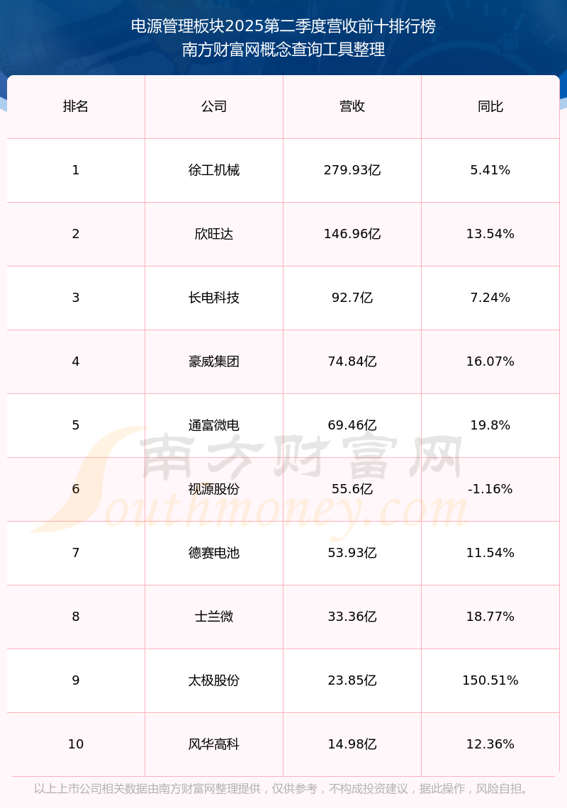按照南方財(cái)富網(wǎng)概念查詢工具統(tǒng)計(jì),該股所屬板塊為電源管理板塊,該板塊共有30只股票,帝奧微2025第二季度營(yíng)收在該板塊中排名為第30名,該板塊2025第二季度營(yíng)收排名前十的股票如下表: