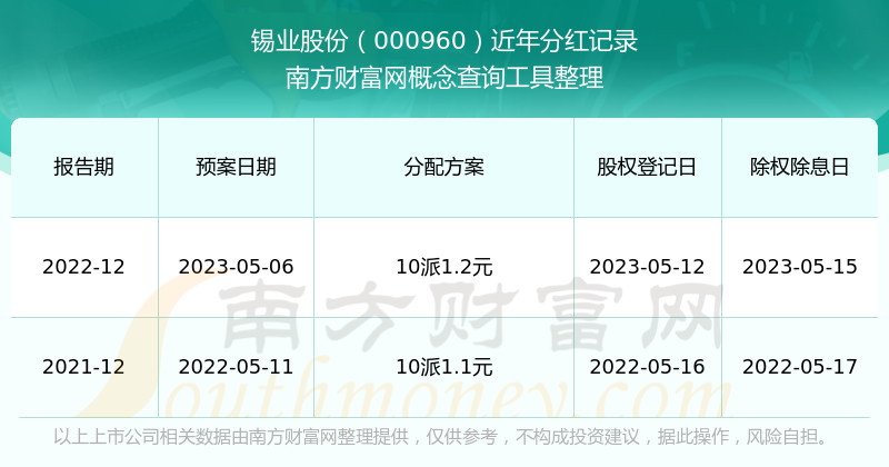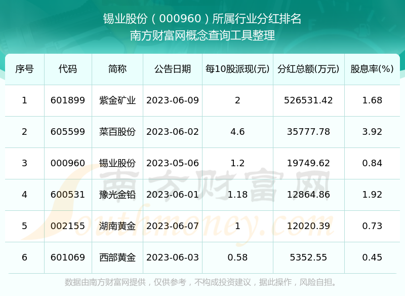 二、錫業(yè)股份000960行業(yè)分紅排名