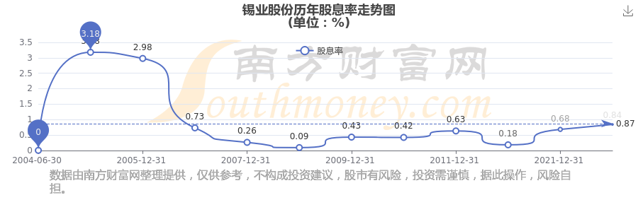 近年錫業(yè)股份年度股息率走勢如下圖: