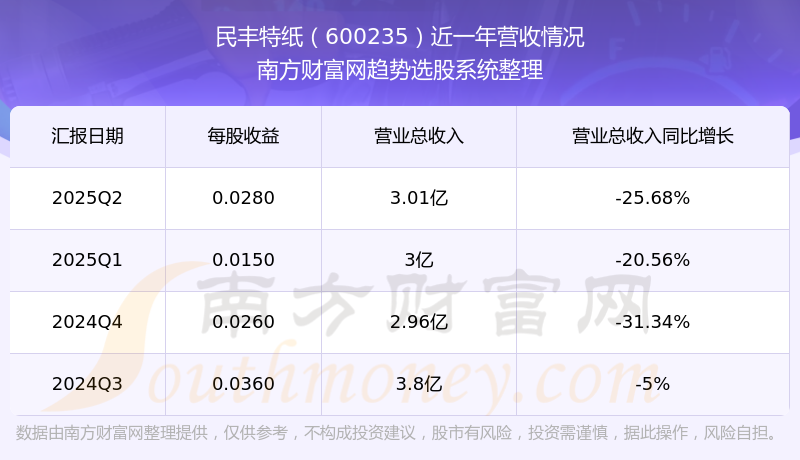 民豐特紙股票近一年營收情況如下表: