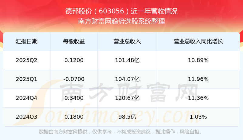 德邦股份2025年第二季度顯示,公司主營收入101.48億元,同比10.89%;歸母凈利潤1.21億元,同比-49.81%;扣非凈利潤8400.57萬元,同比-53.85%。