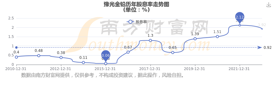 近年豫光金鉛年度股息率走勢如下圖: