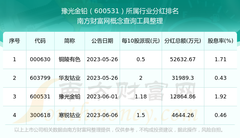 二、豫光金鉛600531行業(yè)分紅排名