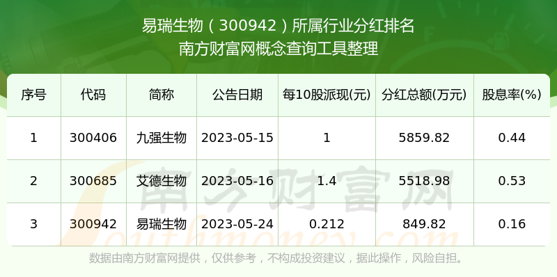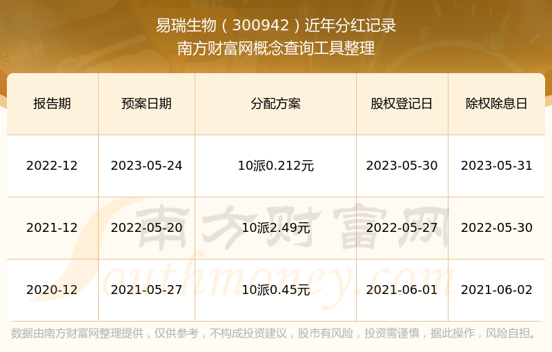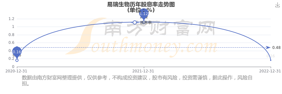易瑞生物最新一次公布的分紅方案:10派0.212元。