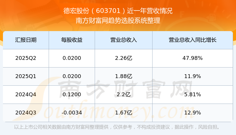 德宏股份(603701)披露2025年第二季度報(bào)告,報(bào)告期實(shí)現(xiàn)營收2.26億元,同比47.98%;歸母凈利潤522.62萬元,同比-38.44%;扣非凈利潤387.91萬元,同比191.38%;基本每股收益0.02元。
