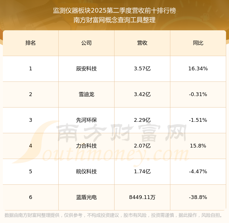 按照南方財富網(wǎng)概念查詢工具統(tǒng)計,該股所屬板塊為監(jiān)測儀器板塊,該板塊共有6只股票,皖儀科技2025第二季度營收在該板塊中排名為第5名,該板塊2025第二季度營收排名前十的股票如下表: