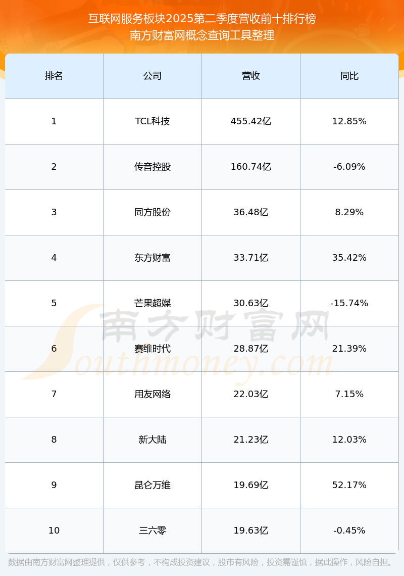 按照南方財富網(wǎng)概念查詢工具統(tǒng)計,該股所屬板塊為互聯(lián)網(wǎng)服務(wù)板塊,該板塊共有52只股票,新炬網(wǎng)絡(luò)2025第二季度營收在該板塊中排名為第52名,該板塊2025第二季度營收排名前十的股票如下表: