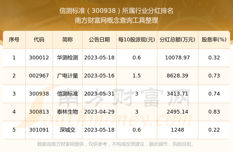 二、信測標準300938行業(yè)分紅排名