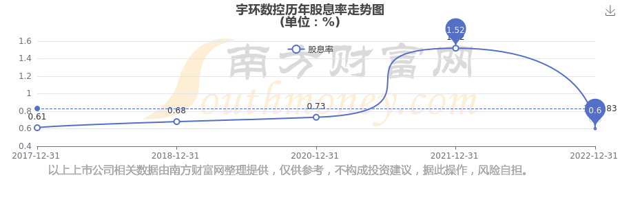 近年宇環(huán)數(shù)控年度股息率走勢如下圖: