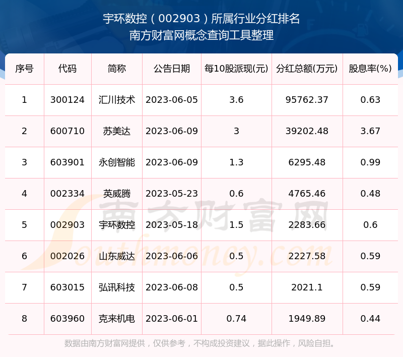 二、宇環(huán)數(shù)控002903行業(yè)分紅排名