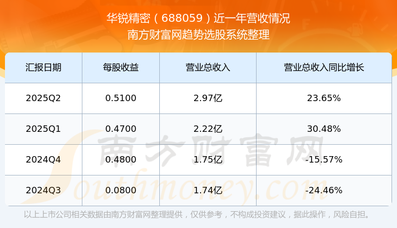 華銳精密發(fā)布2025年第二季度財報。實現(xiàn)總營收2.97億元,同比增長23.65%;扣非凈利潤同比增長2.26%至5560.46萬元。