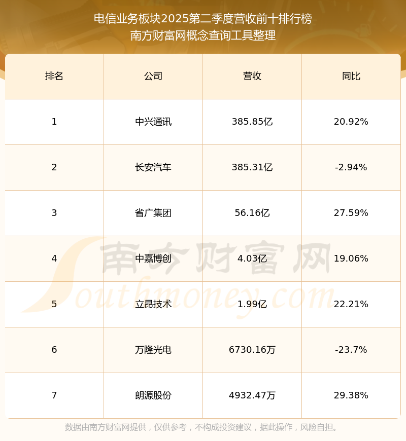 按照南方財富網(wǎng)概念查詢工具統(tǒng)計,該股所屬板塊為電信業(yè)務(wù)板塊,該板塊共有7只股票,稅友股份2025第二季度營收在該板塊中排名為第7名,該板塊2025第二季度營收排名前十的股票如下表: