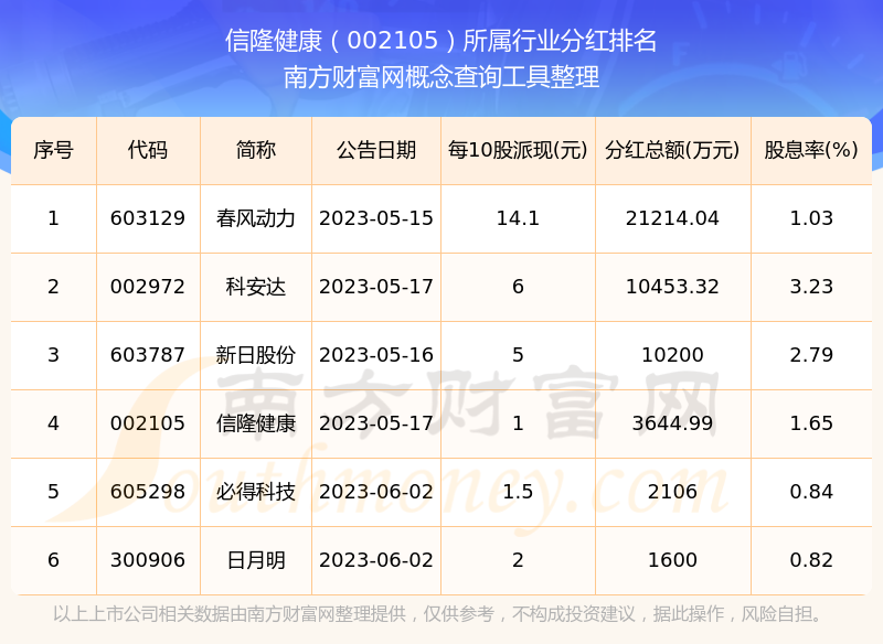 按照南方財富網趨勢選股系統(tǒng)統(tǒng)計,信隆健康所屬行業(yè)為交運設備行業(yè),交運設備行業(yè)分紅排名情況如下表: