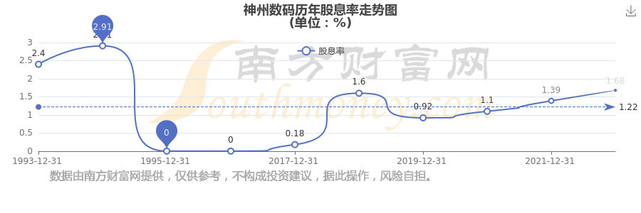 近年神州數(shù)碼年度股息率走勢如下圖: