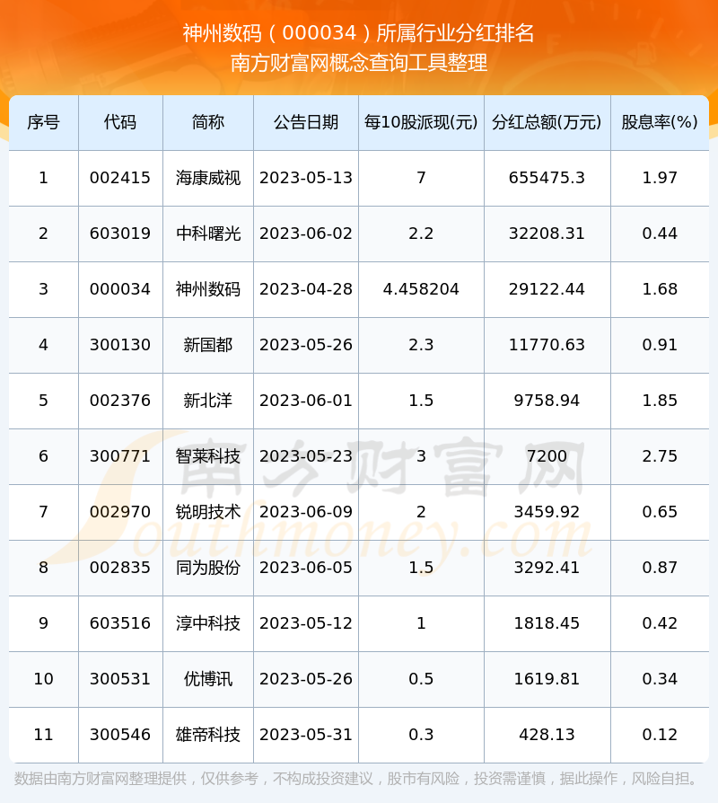 二、神州數(shù)碼000034行業(yè)分紅排名