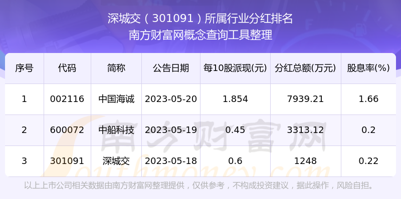 二、深城交301091行業(yè)分紅排名