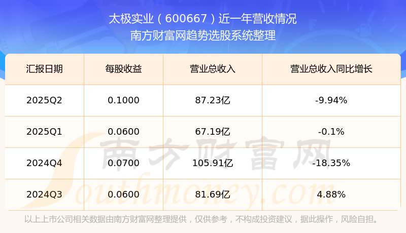 太極實(shí)業(yè)股票近一年營收情況如下表: