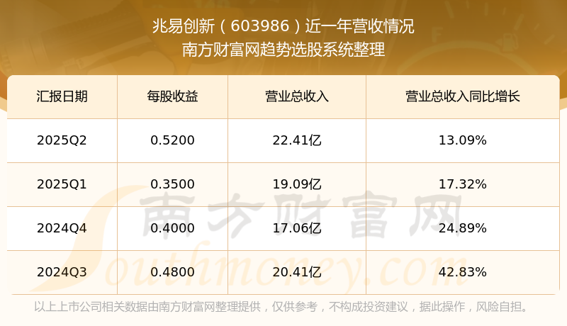 兆易創(chuàng)新2025年第二季度公司實(shí)現(xiàn)營(yíng)業(yè)收入22.41億元,同比13.09%;歸母凈利潤(rùn)3.41億元,同比9.17%。