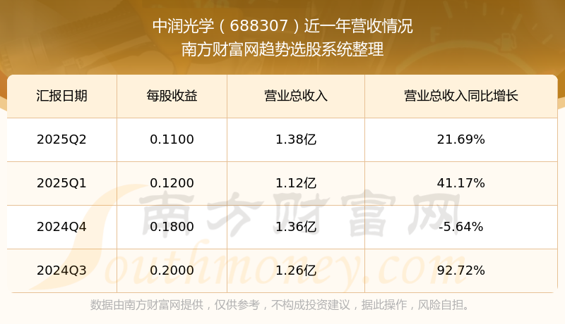 一、中潤(rùn)光學(xué)(688307)股票營(yíng)收情況