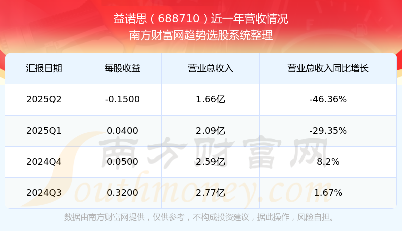 益諾思2025年第二季度財報顯示,公司主營收入1.66億元,同比-46.36%;歸母凈利潤-2070.8萬元,同比-153.67%;扣非凈利潤-3440.95萬元,同比-195.79%;