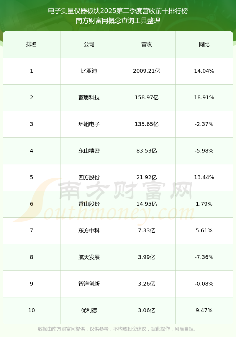 按照南方財(cái)富網(wǎng)概念查詢工具統(tǒng)計(jì),該股所屬板塊為電子測量儀器板塊,該板塊共有22只股票,思看科技2025第二季度營收在該板塊中排名為第19名,該板塊2025第二季度營收排名前十的股票如下表: