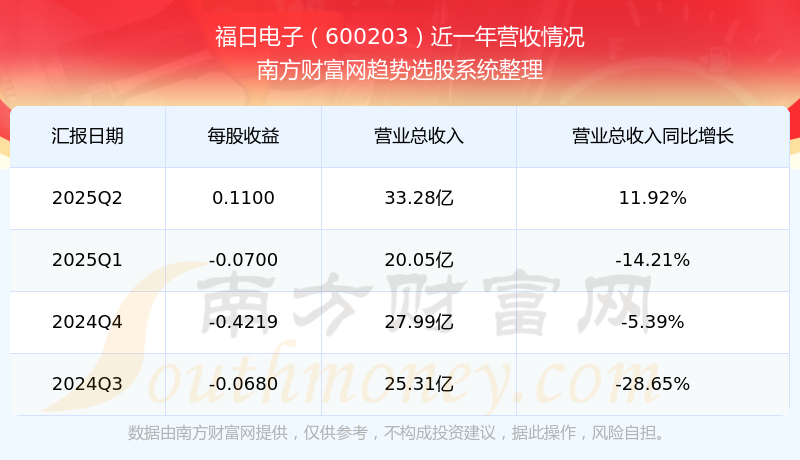 福日電子2025年第二季度財(cái)報(bào)顯示,公司主營(yíng)收入33.28億元,同比11.92%;歸母凈利潤(rùn)6236.99萬(wàn)元,同比77231.19%;扣非凈利潤(rùn)4830.5萬(wàn)元,同比263.49%;