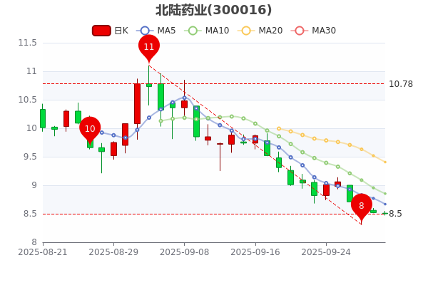 10月9日消息,北陸藥業(yè)7日內(nèi)股價(jià)下跌6.1%,最新報(bào)8.520元,成交額247.79萬(wàn)元。