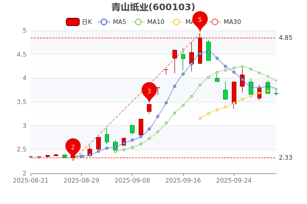 10月9日,青山紙業(yè)(600103)開盤報3.68元,截至11時12分,該股跌0.27%,報3.670元,3日內(nèi)股價上漲0.81%,總市值為82.24億元。