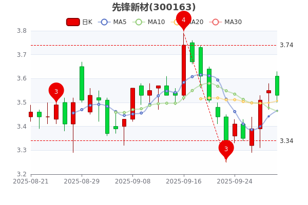 截止10月9日11時(shí)23分,先鋒新材(300163)跌0.56%,股價(jià)為3.530元,盤中股價(jià)最高觸及3.63元,最低達(dá)3.5元,總市值16.73億元。