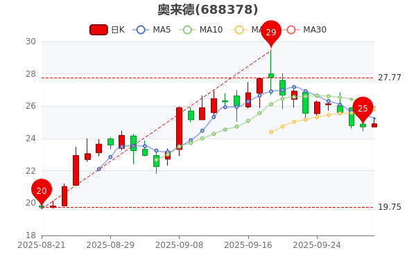 10月9日收盤消息,奧來德最新報價24.910元,3日內股價上漲0.44%,市盈率為57.93。