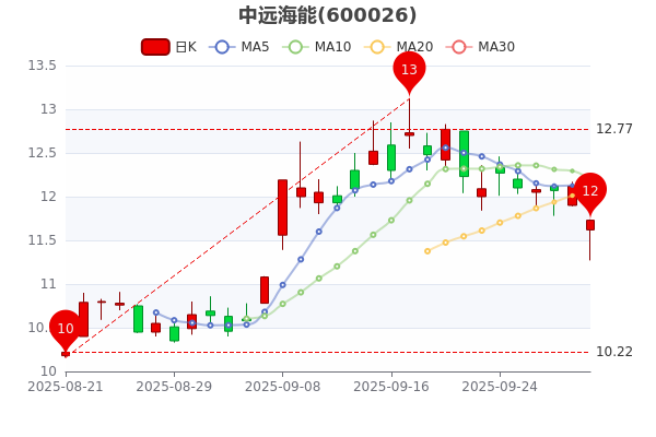 下午三點(diǎn)收盤中遠(yuǎn)海能(600026)報(bào)11.730元,今日開盤報(bào)11.62元,跌3.22%,當(dāng)日最高價(jià)為11.74元,換手率1.96%,成交額7.87億元,7日內(nèi)股價(jià)下跌2.98%。