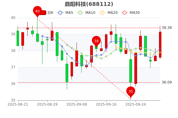 10月9日消息,鼎陽科技7日內(nèi)股價上漲7.79%,最新報39.140元,成交額9622.01萬元。