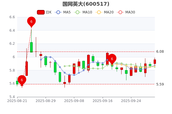 截至發(fā)稿,國網(wǎng)英大(600517)漲1.53%,報5.960元,成交額2.04億元,換手率0.6%,振幅漲1.53%。