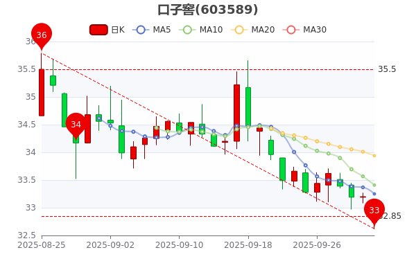 9月26日消息,口子窖截至收盤,該股報32.850元,漲0.48%,3日內(nèi)股價下跌1.04%,總市值為196.48億元。