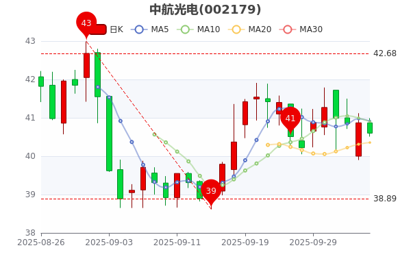 09時55分中航光電(002179)報40.530元,今日開盤報40.87元,跌0.66%,當(dāng)日最高價為40.99元,換手率0.15%,成交額1.28億元,7日內(nèi)股價上漲0.88%。