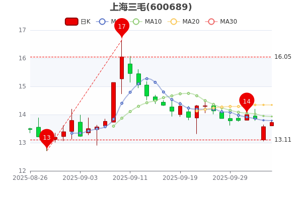 截至10時(shí)18分,上海三毛(600689)目前漲1.11%,股價(jià)報(bào)13.710元,成交76.91萬手,成交金額1054.68萬元,換手率0.51%。