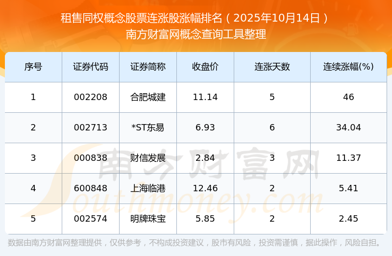 2025年10月14日租售同權(quán)概念股票連漲股漲幅排名
